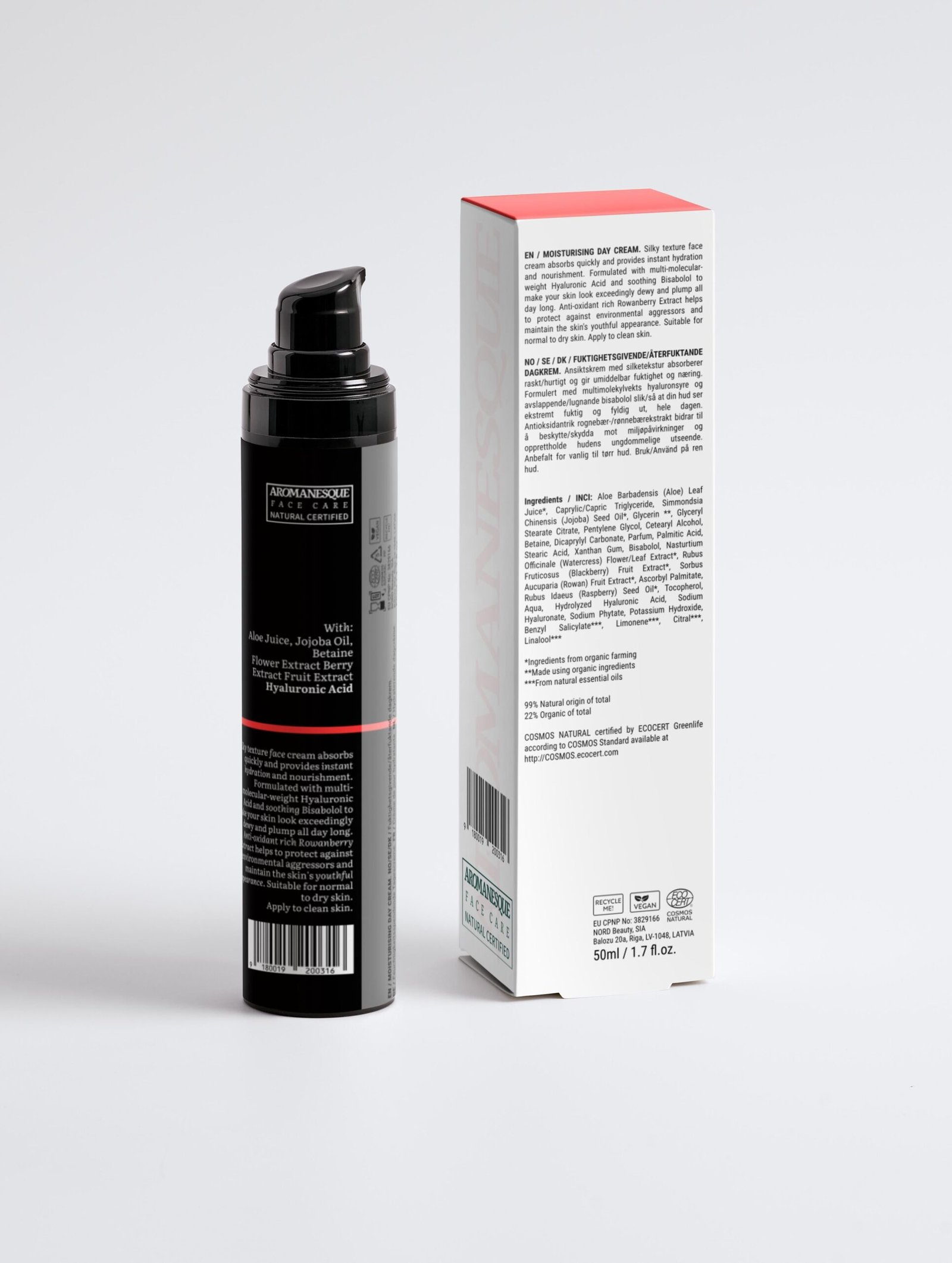 Experience all-day hydration and nourishment with Aromanesque Moisturising Day Cream. This silky-textured cream, enriched with multi-molecular-weight Hyaluronic Acid, Bisabolol, and Rowanberry Extract, leaves your skin dewy, plump, and protected against environmental aggressors. Suitable for normal to dry skin, this luxurious cream is the perfect addition to your skincare routine. Apply to clean skin.