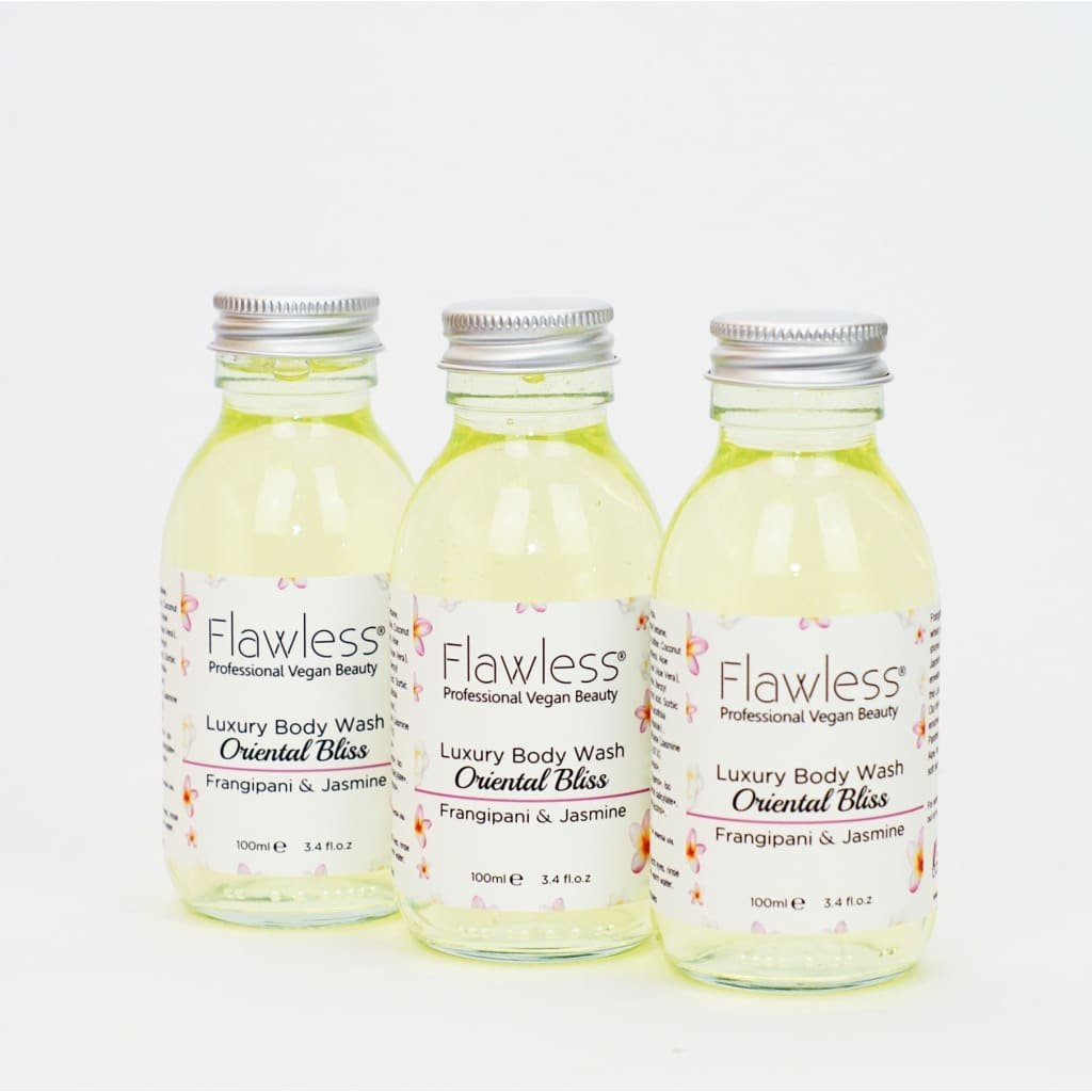 Packaging: 50ml and 100ml Luxury Body Wash come in a recycled glass bottle with aluminium lid.