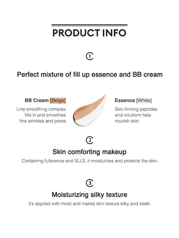- Fill-Up Essence and BB Cream Combination: This dual-action formula includes a line-smoothing complex in the BB cream, effectively covering wrinkles and pores, and nourishing ingredients in the essence.