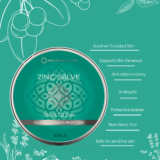 Experience the calming relief with Organic Zinc Salve, formulated to nurture and restore troubled skin. This rich salve combines the natural benefits of Shea Butter, Tamanu Oil, Beeswax, and Zinc Oxide, enhanced with a blend of essential oils known for their healing properties.